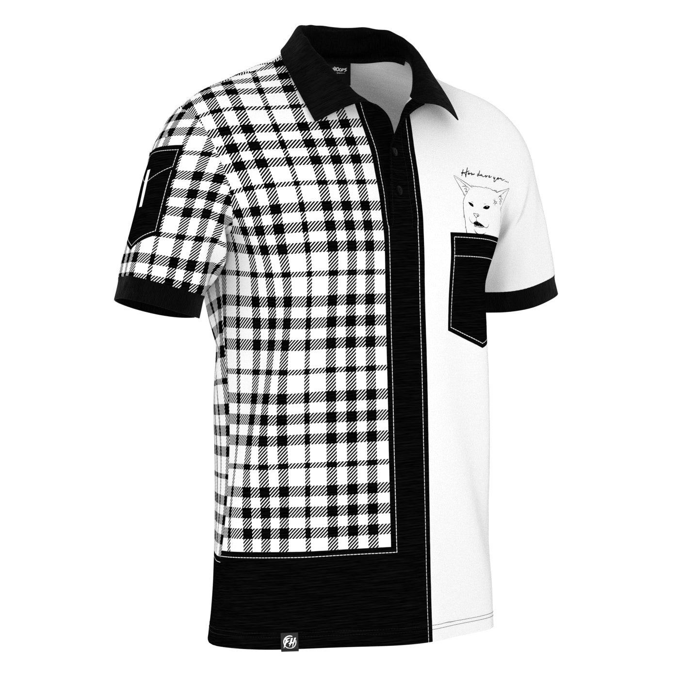 Get ready to meet the fiercest feline around with the Angry Cat Polo Shirt. But wait, there's more - a cat lurking out from the chest pocket, just waiting to pounce. Perfect for those who want to show off their love for cats in a fun and quirky way. The angry cat in the pocket is like having a mini bodyguard with you wherever you go. The chequered print on the half of the shirt is like a playground for the cat, giving it plenty of space to prowl and show off its fierceness. It is made of high-quality materials, ensuring both comfort and durability, so you can wear it all day long without any worries.