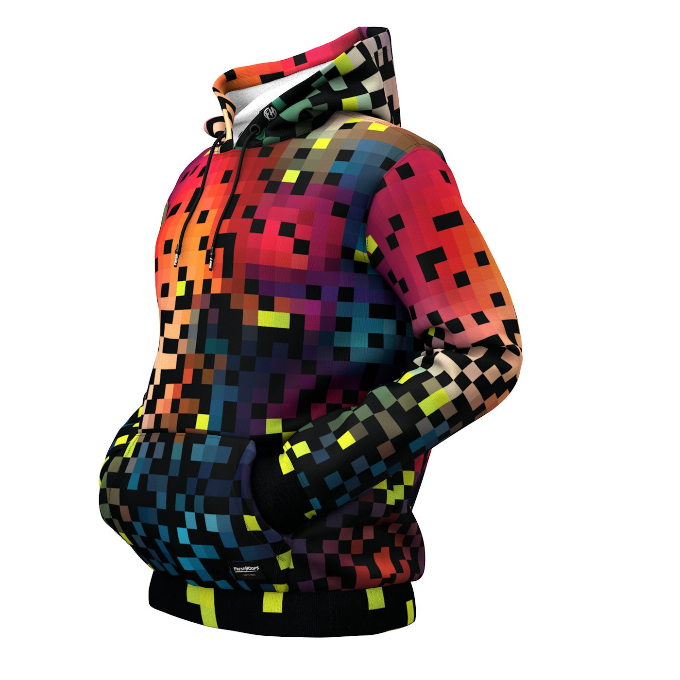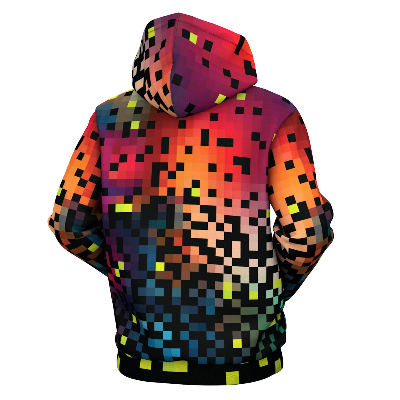 Make your wardrobe more unique by including some fiery colors with our Calypso Hoodie, featuring a custom-made design, crafted from premium polyester. The colorful pixel pattern gradient was created by our team of resident artists.