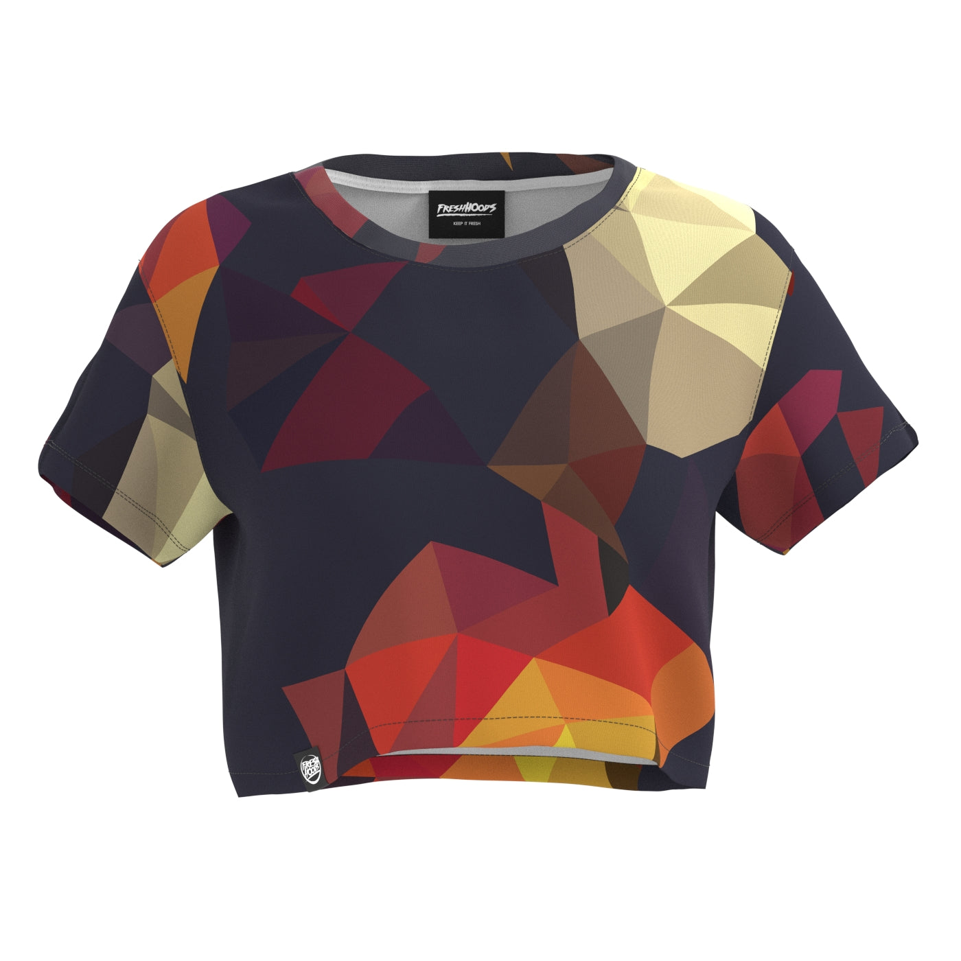 Bring vibrance to your streetwear collection wearing the Cubes Crop Top, featuring a custom-made design, crafted from premium polyester. The triangle print in soft warm colors was designed by our resident artists.
