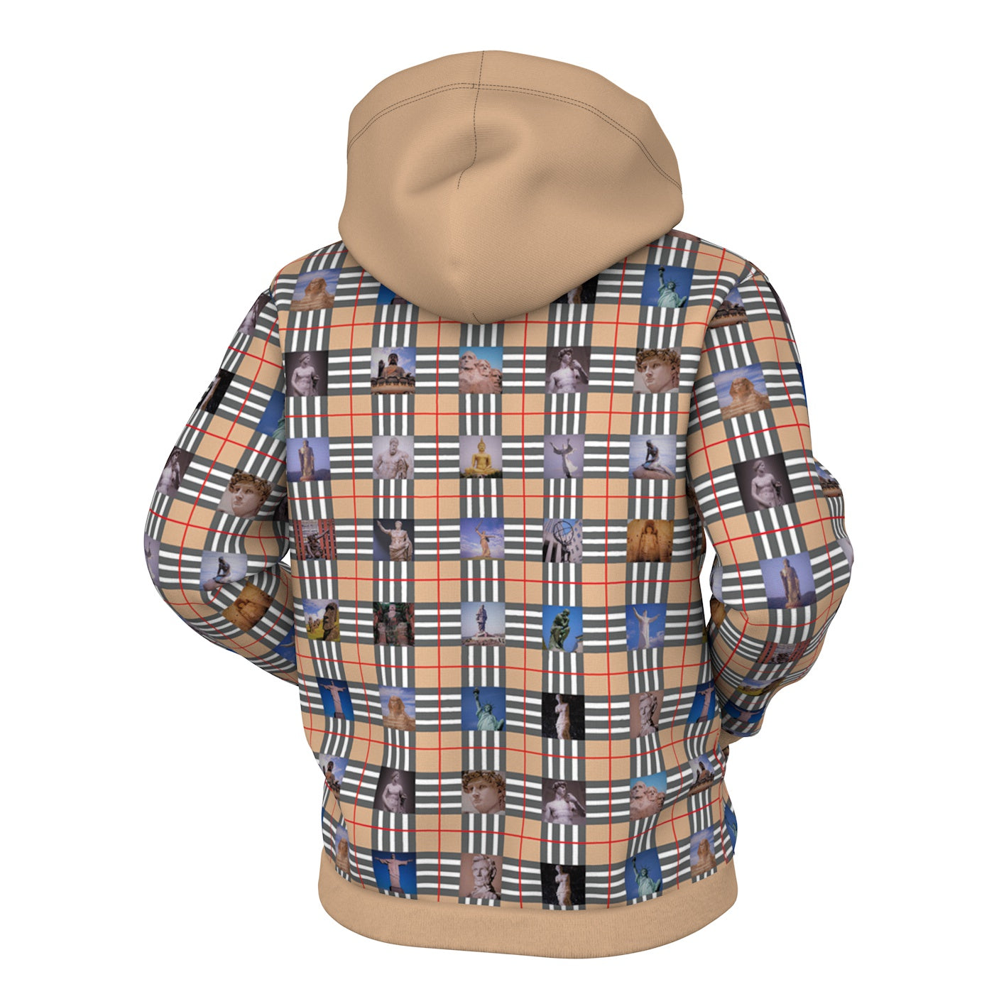 Add some serious style to your collection with the Cultural Snaps Zip Up Hoodie, featuring a custom-made design, crafted from premium polyester. The plaid design with sublimation-printed sculptures was created by our talented artists.