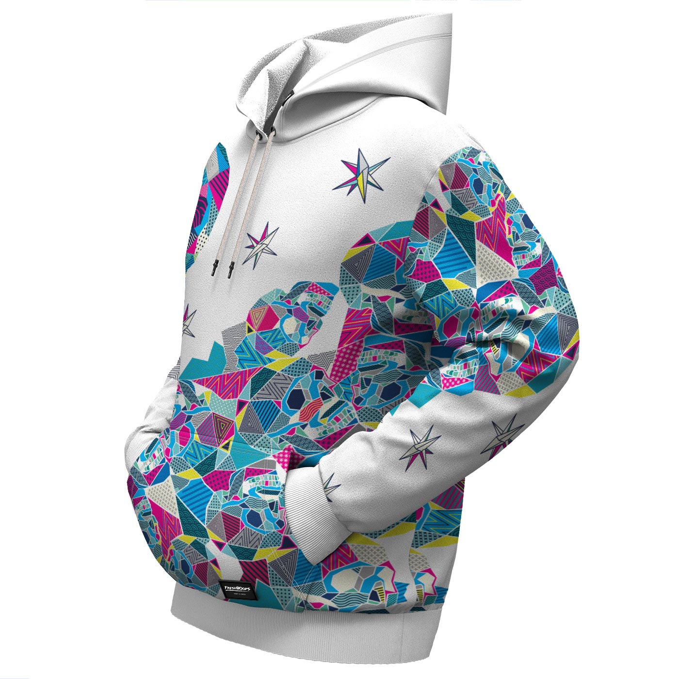 Add a bold, trippy style to your daily looks with the Dazed Skull Hoodie, featuring a custom made design, crafted from premium polyester. The vibrant, abstract print of a psychedelic skull graphic was created by our team of resident artists.