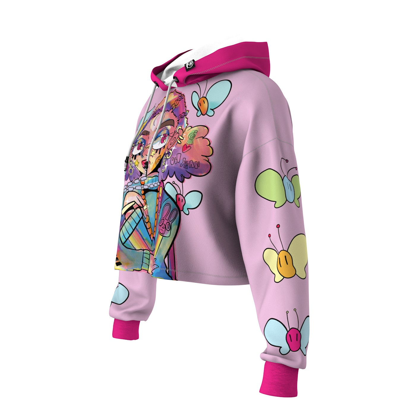 Get a funky, boho look with the Dazzling Beauty Cropped Hoodie, featuring a custom-made design, crafted from premium polyester. The street fashion character design was created by our team of resident artists in a collaboration with the talented graphic artist, SHAZZA.