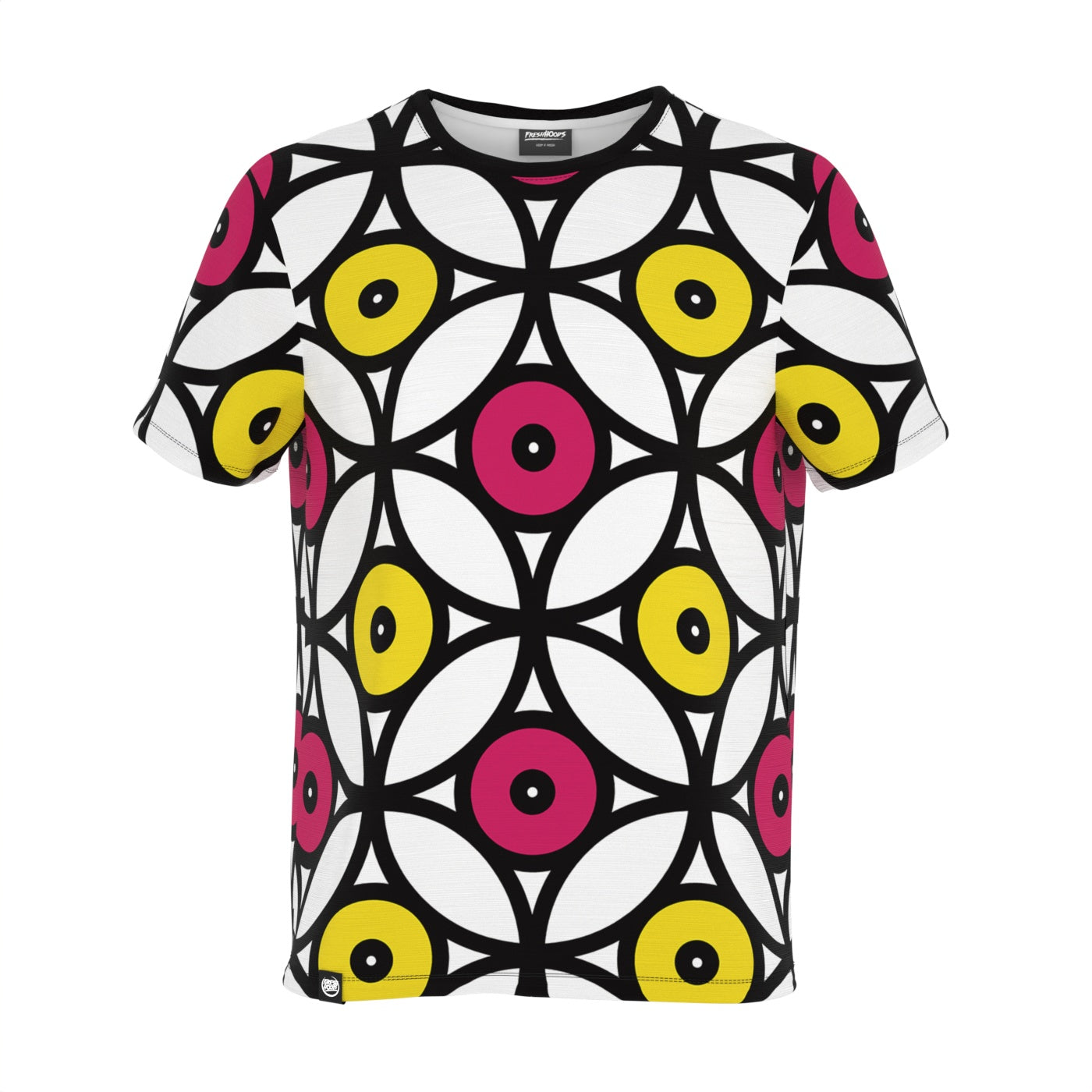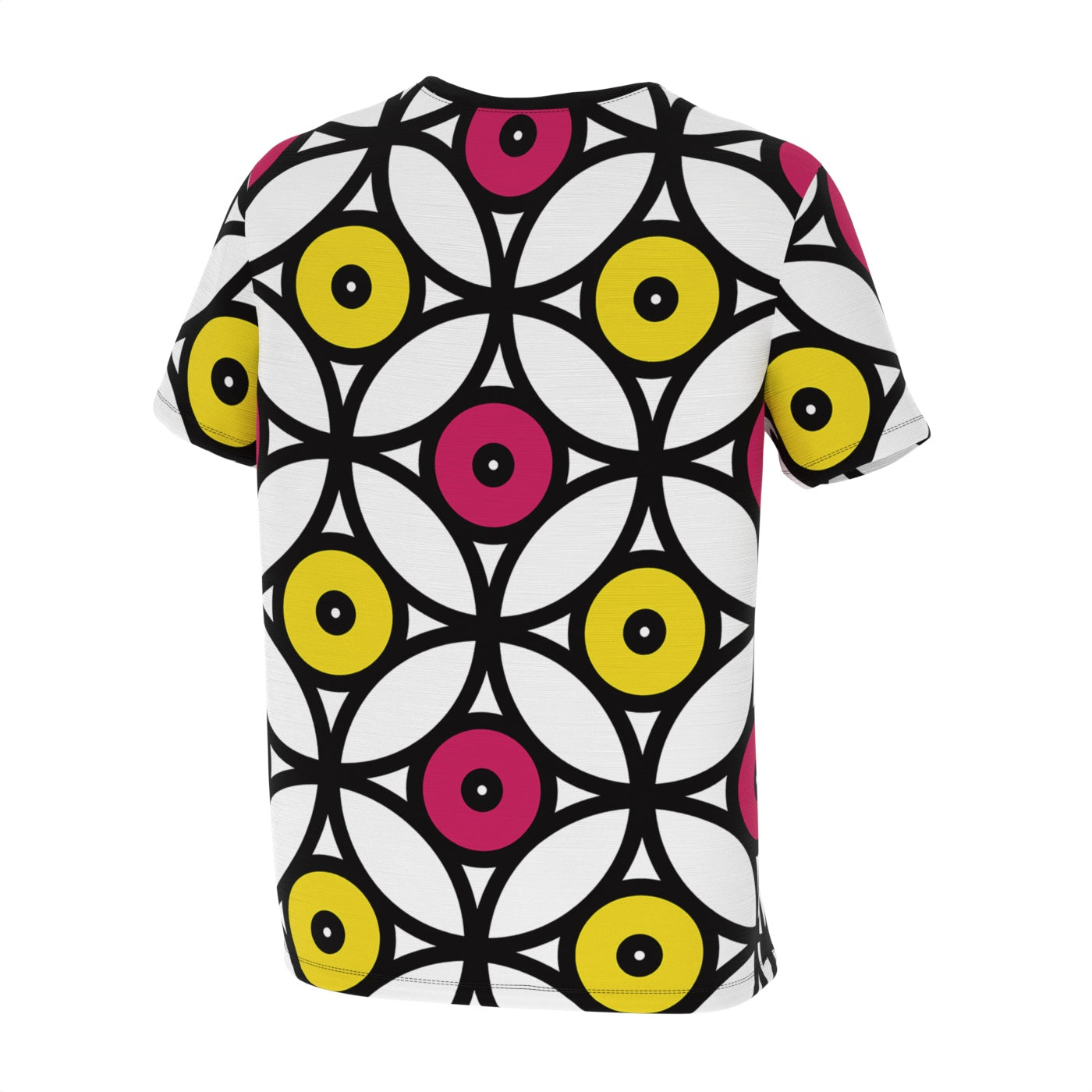 Dive into a world of vibrant patterns with the Disc Texture T-Shirt! This bold design features eye-catching circular motifs in striking yellow and magenta, creating a dynamic look that’s perfect for standing out. Designed by the talented Pitpop, it blends modern art with streetwear style, making it a unique addition to any wardrobe.
