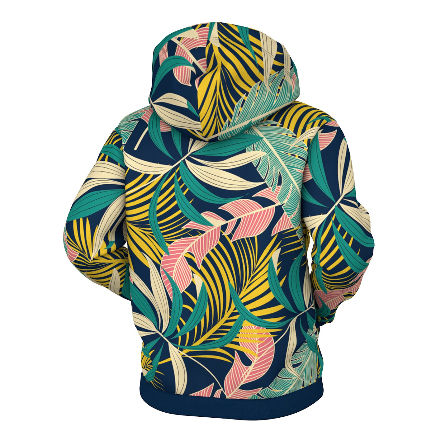Get beach ready in the Hawaii Zip Up Hoodie, featuring a custom made design and tailored from premium polyester. The green, yellow and pink leafs bring you to a tropical paradise. The design was created by one of our talented artists.