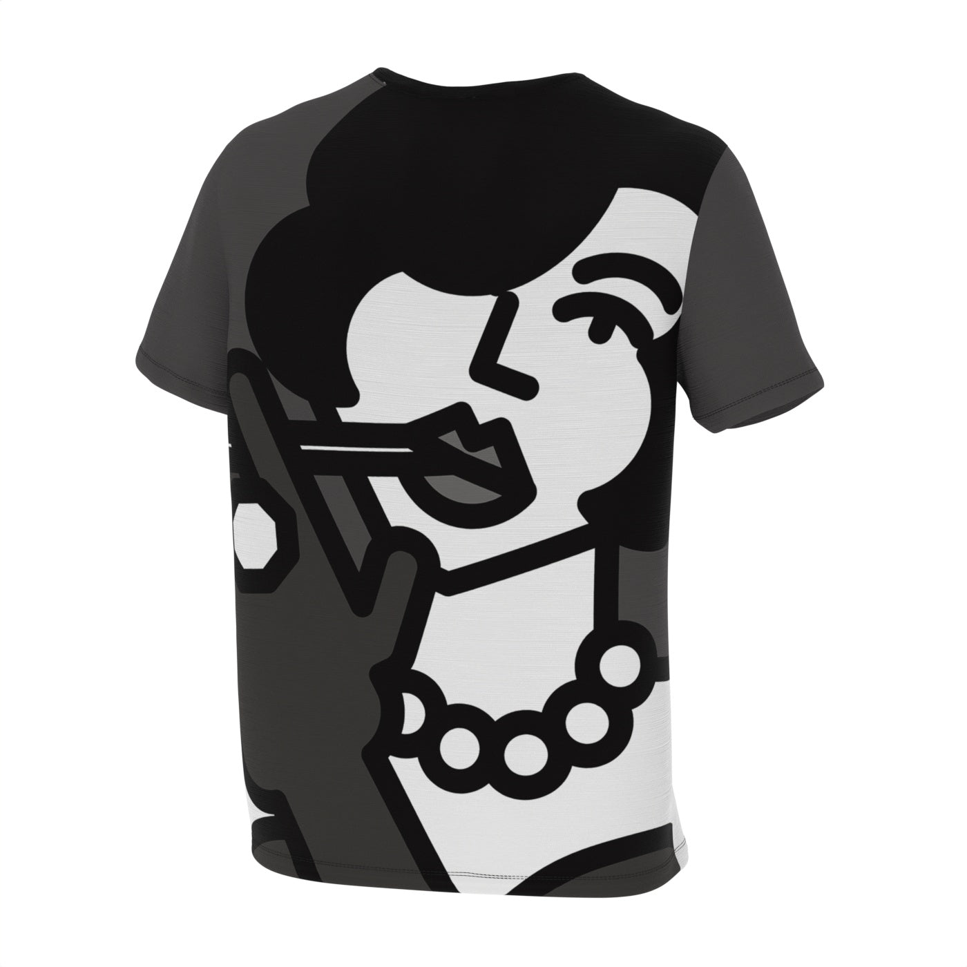 Elevate your casual wardrobe with the Madame Chefuma T-Shirt by Pitpop! This striking tee features a bold, graphic design of a stylish lady enjoying a sophisticated moment, all wrapped up in cozy, monochrome chic. Perfect for those who appreciate a touch of class with their streetwear, this t-shirt blends luxury and comfort effortlessly. With its unique artistic flair, it is sure to turn heads and keep you looking fabulous. Step out in style and embrace your inner fashionista!