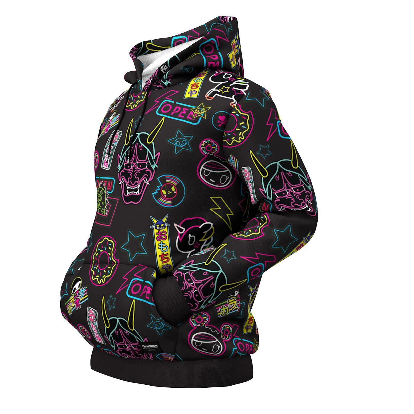 Get ready for a night on the town with the Neon Signs Hoodie, featuring your favorite tokidoki characters having fun in the glow of neon lights! Let yourself be inspired by this city design's exciting rhythm, which is part of our exclusive Tokidoki® collection.