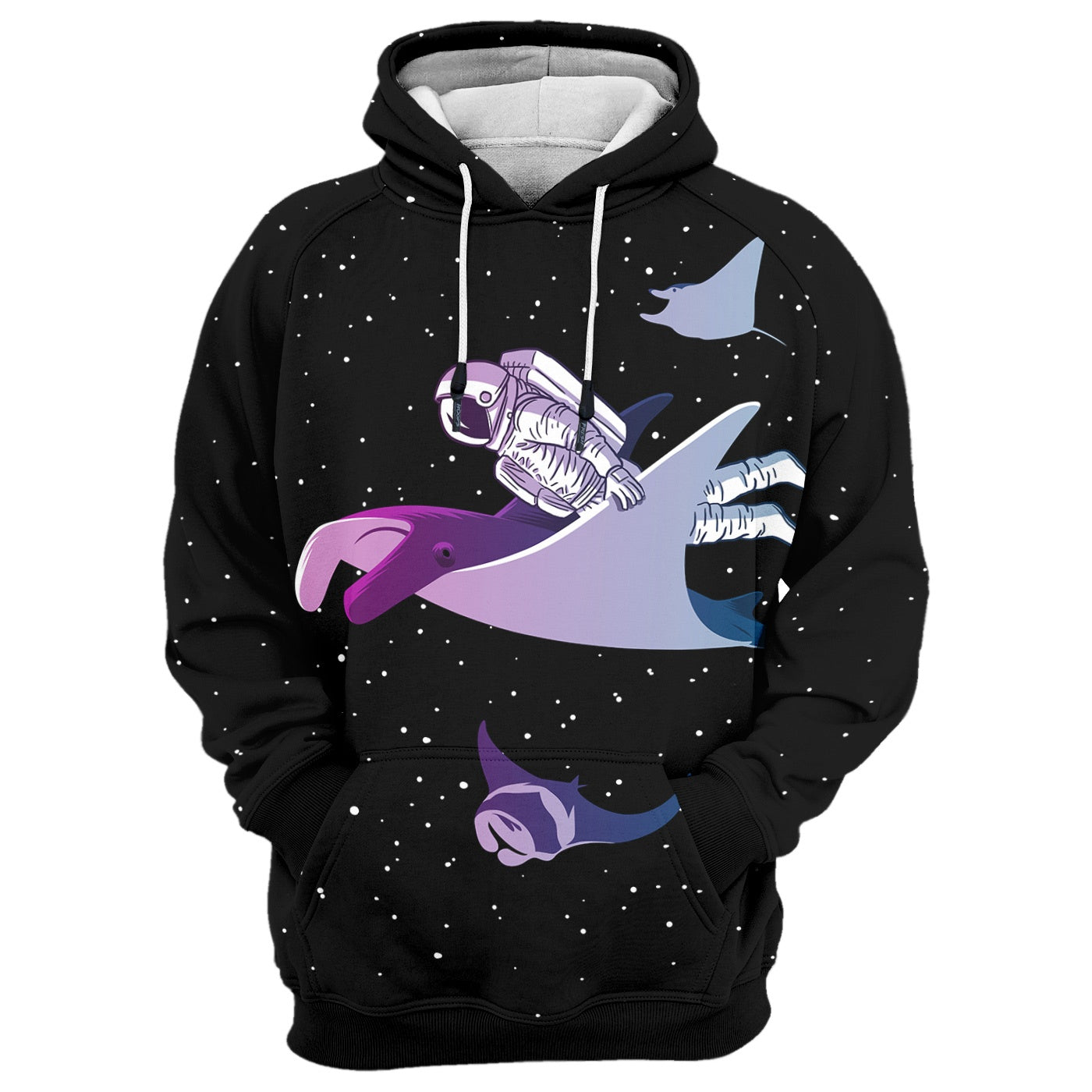 Achieve out-of-this-world style with our Pez Manta Hoodie, from our APC collection. Featuring a custom made design, crafted from 100% polyester. Our team of resident artists created this striking galaxy design with a floating astronaut on a manta.