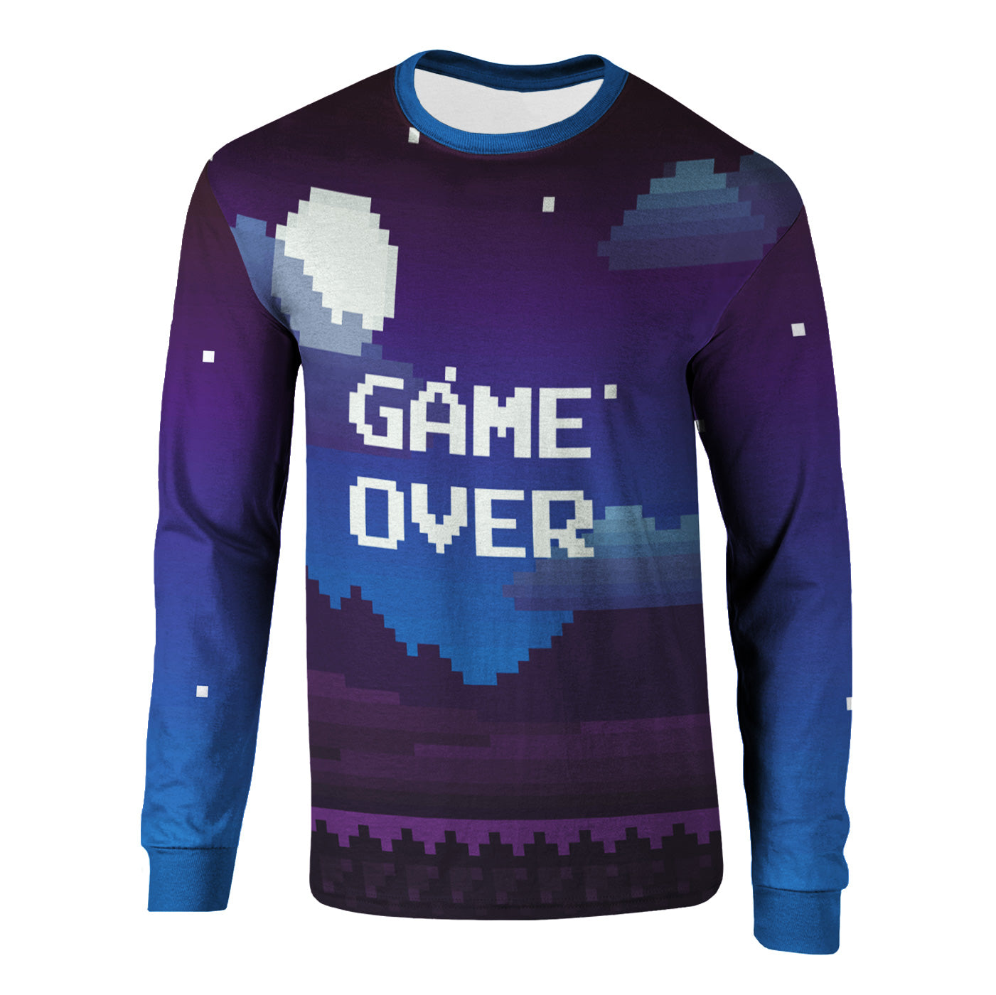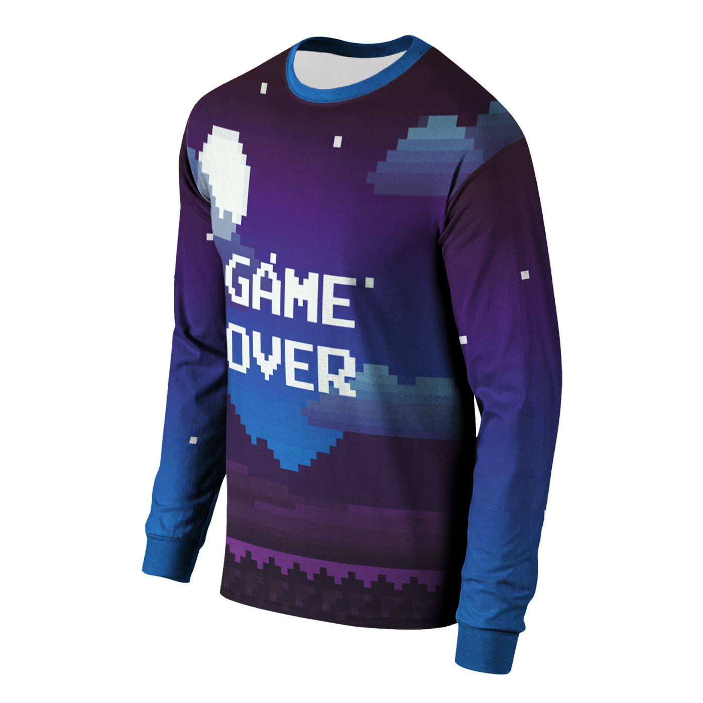 Get in the game with the Pixel Game Over Long Sleeve Shirt, featuring a custom made design, crafted from premium polyester. Our team of resident artists created this pixelated "Game Over" script with a night background.
