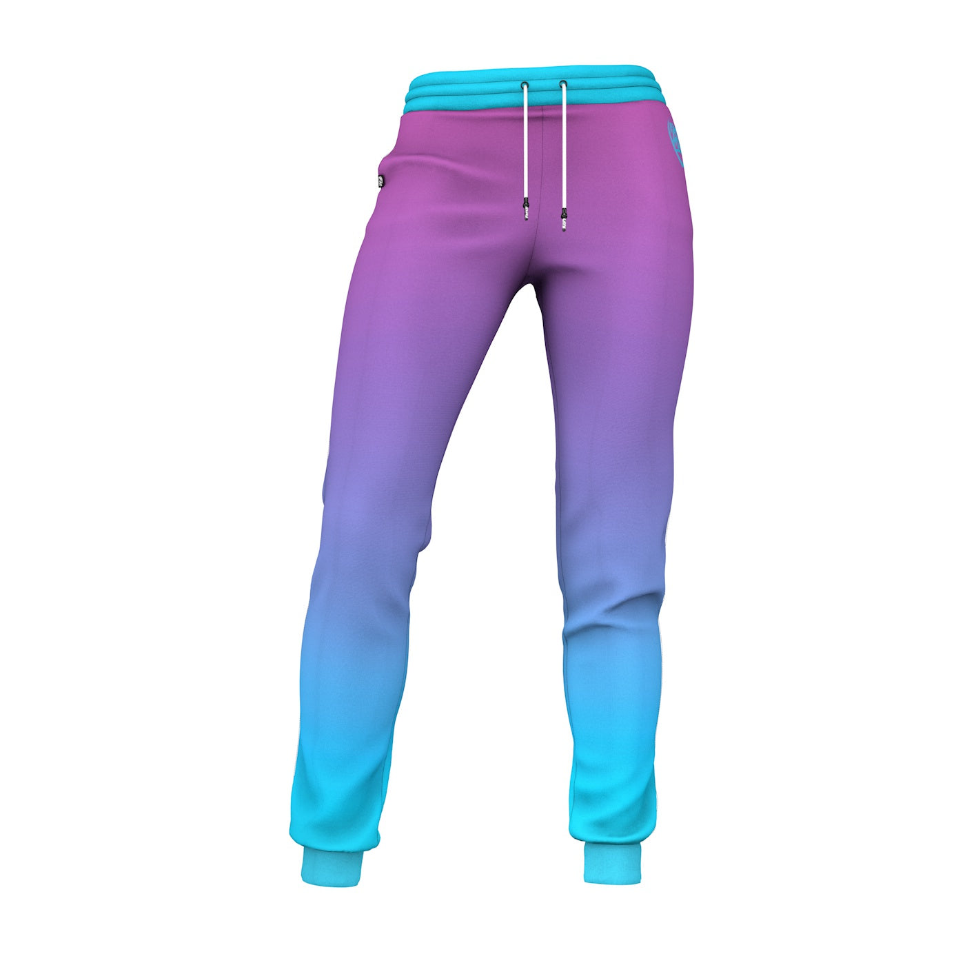 Color up your life wearing the lightweight Purple Ice Women Sweatpants, featuring a clean-cut and purple and blue gradient pattern. Two hand pockets, a drawstring waistband, and ribbed ankle cuffs make these pants a fresh choice for those comfy days.