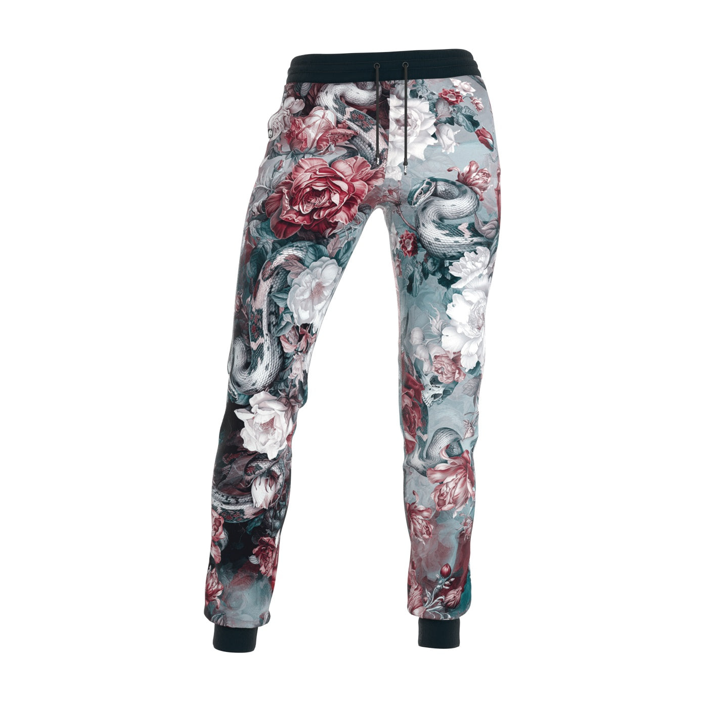 Unveil the allure of the Skull Serpent Serenade V5 Women Sweatpants, a visionary creation by Riza Peker. Ethereal flowers and elusive snakes intertwine in a haunting dance against a canvas of deep greys, subtle reds, and enigmatic blacks. Peker's artistry transforms this into a bold statement, where each wear is a journey into the evolving tapestry of dark elegance. Unlike its predecessor, this iteration brings forth a fresh and striking visual impact, redefining the serenade of shadows and blooms.