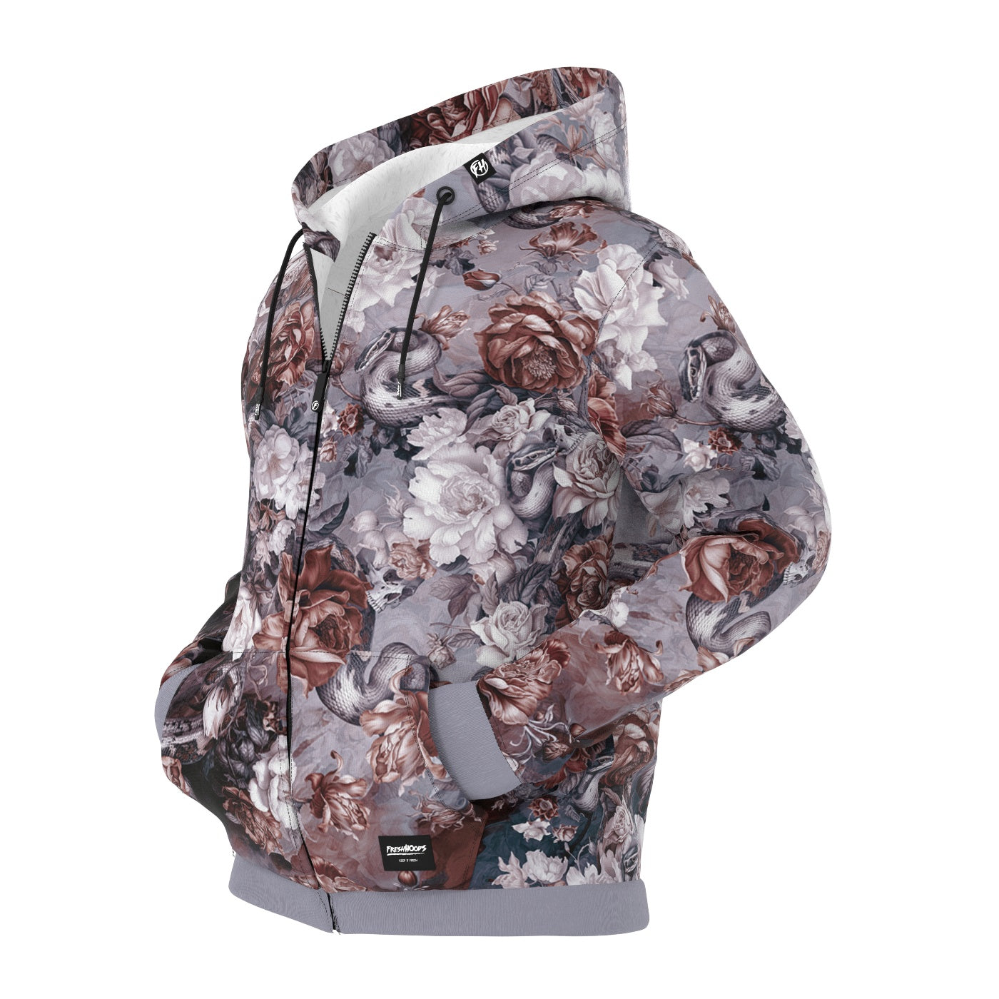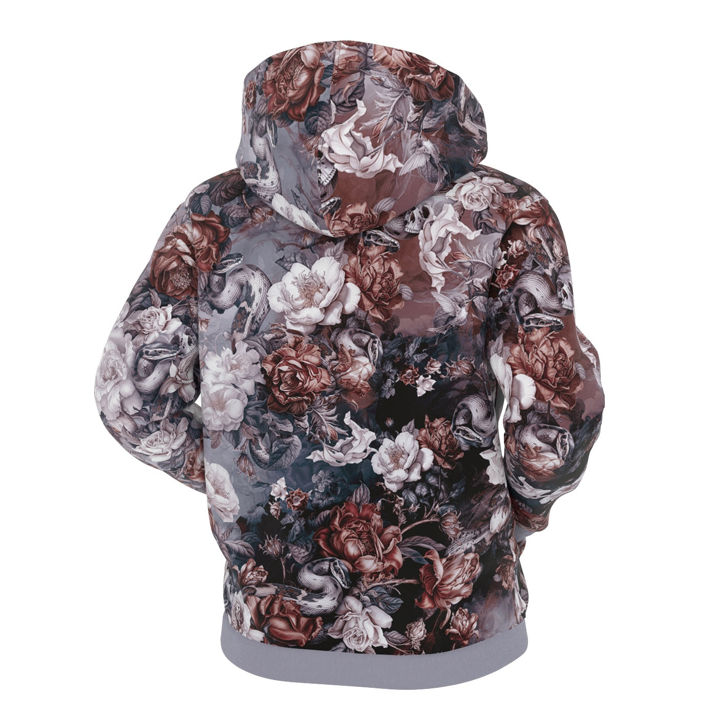 Embrace the mystical allure of the Skull Serpent Serenade Zip Up Hoodie, a visionary creation by Riza Peker. This hauntingly beautiful design unfolds with ethereal flowers and elusive snakes, crafting a tapestry that blurs the lines between darkness and enchantment. Peker's artistic finesse transforms it into a wearable masterpiece, inviting you to explore the intricate dance of blooms and serpents. Flora and fauna take center stage, creating a striking visual narrative that captivates with every glance. It's an immersive journey into a realm where beauty thrives in shadows. Step into the serenade, and let the allure of Peker's creation redefine your style with a touch of the extraordinary.