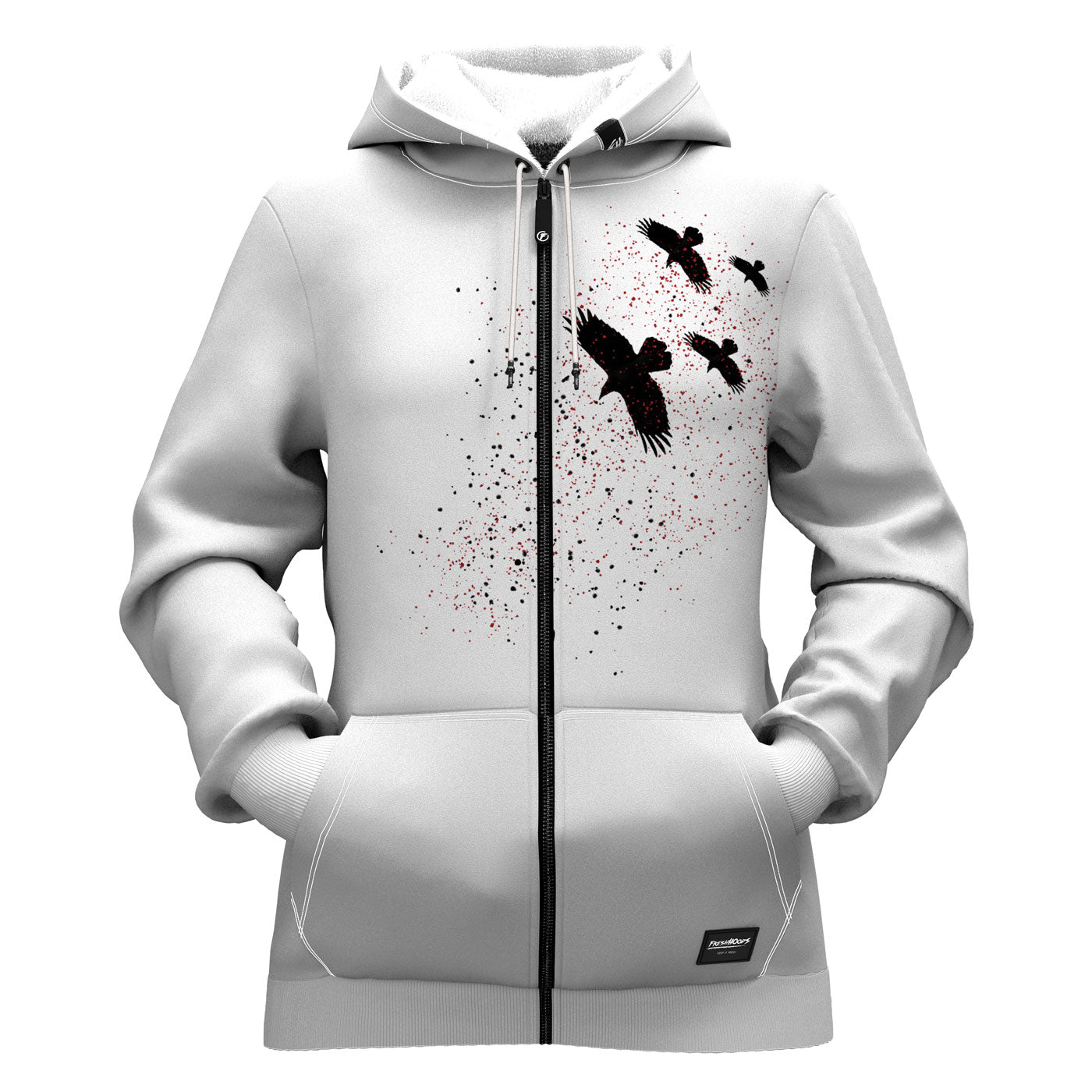 Turn heads when you wear the Sky Crow Women Zip Up Hoodie from our special limited-edition collection, Romart. Featuring a custom-made design, crafted from premium polyester. Our team of talented graphic artists created this flying crow graphic with red & black accents.