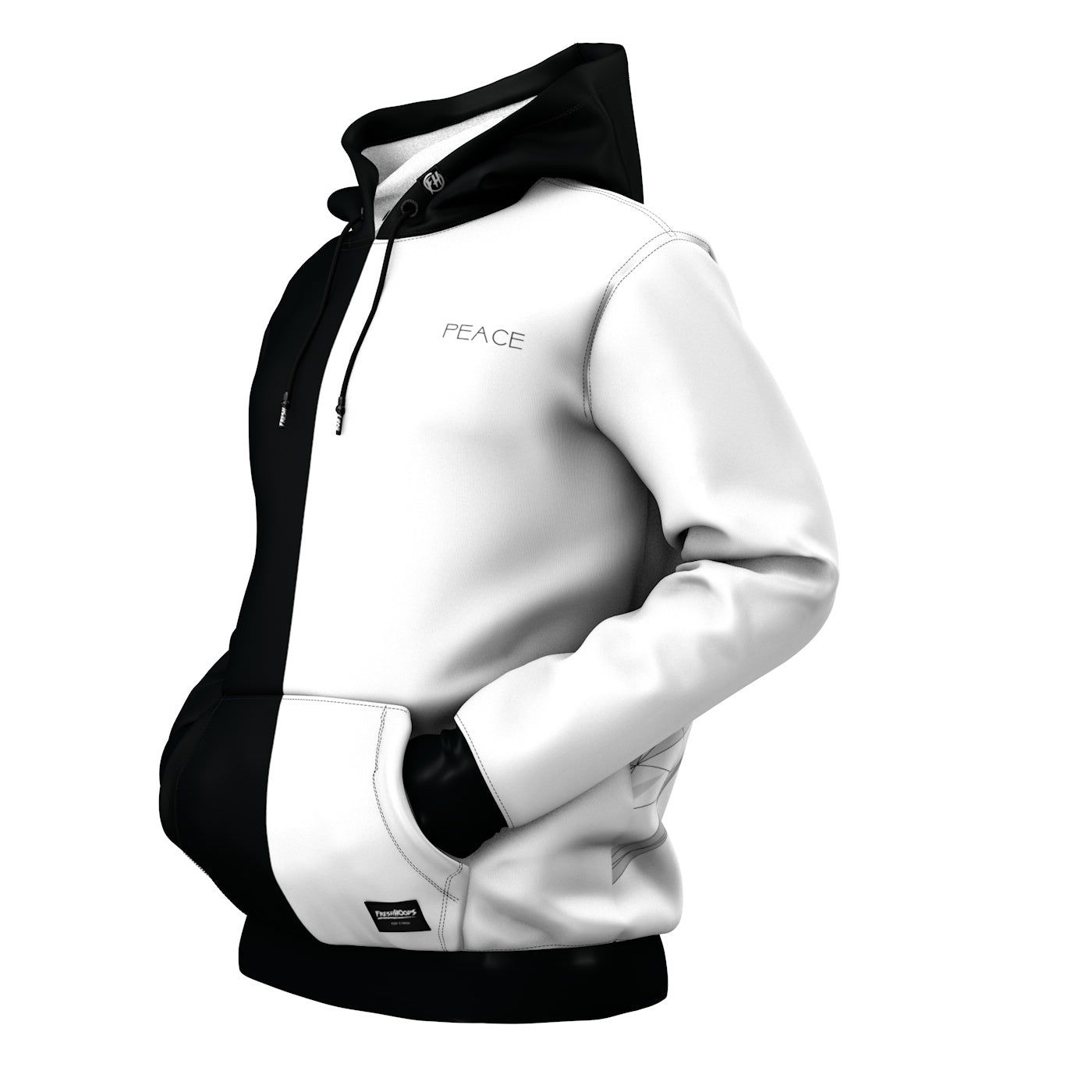 Stand for what's right with the Together In Peace Hoodie, featuring a rubber logo tab and a custom made design, crafted from premium polyester. The black& white color-block design with a geometric touch graphic was created by our team of talented artists.